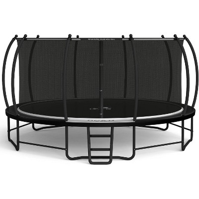 GDFStudio Guy Outdoor/Indoor Steel Ladder Round Trampoline with Enclosure and Toss Game Accessory, Green/12FT