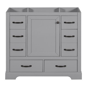Upgrade your bathroom with this 36-inch freestanding bathroom vanity base, designed for flexible customization and modern organization. Built from a durable solid wood frame and reinforced wood panels, this vanity base features a smooth painted finish that is water-resistant, stain-resistant, and easy to maintain. Designed to fit a single center sink top (not included), it allows you to personalize your countertop style with ease. The layout includes a spacious cabinet with adjustable shelf and six drawers in multiple sizes, offering tailored storage for towels, toiletries, and daily essentials. With a versatile modular drawer divider system and sleek modern lines, this bathroom vanity cabinet base complements contemporary, transitional, and modern bathroom decor.