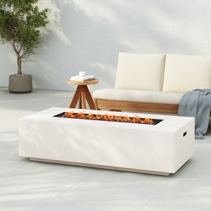 - LIGHTWEIGHT CONCRETE: Constructed from lightweight concrete, this rectangular fire pit table showcases a sleek and refined appearance. Its highly durable design ensures it can support significant weight with ease.