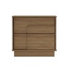 This modern nightstand showcases clean lines, a rich wood grain finish, and overlapping square drawer fronts that elevate any bedroom or living room with timeless elegance. Designed with two full-extension push-to-open drawers, it provides ample storage for books, accessories, and everyday essentials while keeping spaces organized. Its raised mop base allows easy floor cleaning, blending functionality with style. The handle-free, push-to-open system ensures a seamless minimalist aesthetic and smooth operation, making it both visually refined and highly practical for modern home interiors.