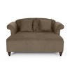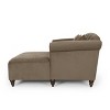 Enjoy spacious comfort whether you’re sharing the seat or indulging in it all to yourself. Blending classic details like graceful scroll arms and turned wood legs with a sleek contemporary touch, this double chaise lounge makes a striking addition to any living room. Adorned with refined button tufting, diamond stitching, and paired with two accent pillows, it offers the perfect place to recline and relax while adding a layer of timeless elegance to your home.