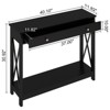This modern console table blends sleek style with practical function, featuring clean lines and a minimalist silhouette that elevates any room décor. Built from premium MDF and particleboard with non-lead-based paint, it ensures lasting strength and stability. The spacious lower open shelf provides ample space for displaying décor, books, or plants, while the smooth pull-out drawer with elegant knobs offers easy access to daily essentials. Perfect for versatile use, it serves beautifully as an entryway table, sofa console, or stylish hallway accent in any modern home.