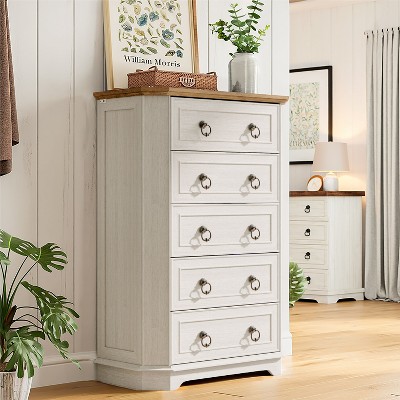 - AMPLE STORAGE WITH ORGANIZED TOP DRAWER: Features 5 smooth full-extension drawers, including a top drawer with optional 6 compartments, perfect for keeping jewelry, accessories, or small essentials neatly arranged.