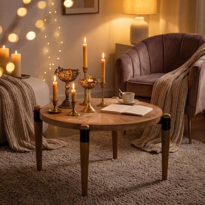 GDFStudio Jean Rustic 36" Octagon Embossed Pattern Wood Coffee Table, Natural/Black