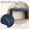 Bring modern elegance and practical storage to your home with the Console Table. Featuring soft rounded curves and fluted drawer detailing, this navy blue piece blends timeless sophistication with everyday functionality. Two spacious drawers provide ample room for essentials, while the glossy painted finish offers durability and easy cleaning. The sturdy tabletop supports up to 220 lbs, perfect for showcasing décor, plants, or books. Adjustable foot pads ensure stability on any surface, making this versatile console table an ideal addition to entryways, hallways, or living rooms.