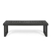 This adaptable bench is equally perfect on its own or as part of your outdoor dining setting. It's all about helping everyone get cozy and enjoy a good meal or fun conversation together, the heart of any backyard gathering. Plus, the wire-brush finish adds unexpected texture pop to the slat panel design, sure to impress —Your patio or backyard just got more inviting!