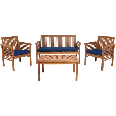 GDFStudio Keanu Outdoor Acacia Wood Loveseat and Coffee Table Set with Cushions, Blue/Teak