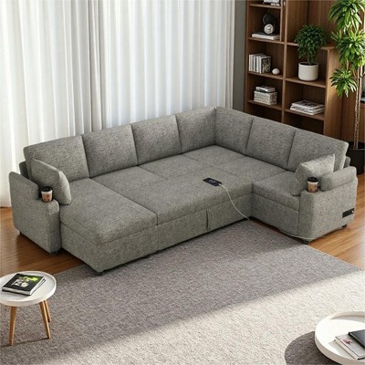 GDFStudio Keene 6-Seater L-Shaped Chenille Sectional Sofa Bed with Pull-Out Sleeper