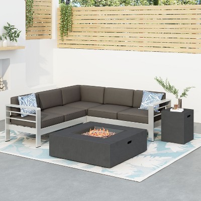 Includes: 1 Left Arm Sectional Piece, 1 Right Arm Sectional Piece, 1 Corner Sectional Piece, 1 Coffee Table