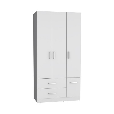GDFStudio Keno Modern Mirror Wardrobe with 2 Doors, 6 Drawers and LED Light, White