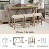 Enhance your dining space with this 4-piece bar table set, featuring a built-in power strip with USB and Type-C ports for modern convenience. The sturdy wood frame, rustic faux wood grain finish, and upholstered saddle stools combine comfort and durability. Designed with a space-saving layout, the stools easily tuck under the counter-height table when not in use, making it ideal for small kitchens, apartments, or breakfast areas. With easy assembly and practical design, this set brings functionality and style to your home.