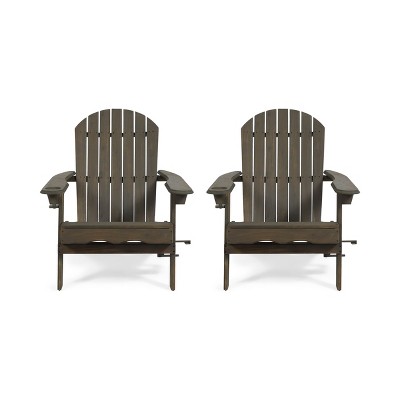 GDFStudio Kono Outdoor Acacia Wood Reclining Adirondack Chair with Footrest (Set of 2), Gray