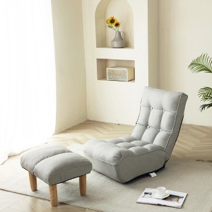 This modern set of floor chair and ottoman combines sleek style with everyday comfort, making it a versatile seating option for any room. Upholstered in breathable linen, it offers durability with a refined touch, while thick high-resilience padding provides superior comfort for reading, gaming, or lounging. Designed with a 4-position adjustable backrest, the chair allows you to switch easily between upright and reclined positions, giving customized ergonomic support. Fully assembled for instant use, this set blends modern elegance, comfort, and functionality, creating the perfect seating solution for contemporary homes.