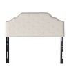 Elevate your bedroom décor with a headboard that blends timeless elegance and modern flair. Showcasing elegant diamond tufting and button detailing, this piece features a graceful camelback silhouette highlighted by stylish nailhead trim. Designed with adjustable legs for versatile use, it easily pairs with most standard metal bed frames. More than just a stylish upgrade, this headboard creates a sophisticated focal point that promises cozy comfort and restful nights.
