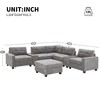 Includes: 2 Sectional Consoles, 1 Left Arm Sectional Piece, 1 Right Arm Sectional Piece, 2 Armless Sectional Pieces, 1 Corner Sectional Piece, 1 Ottoman