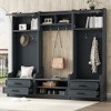 This hall tree features a sleek modern design with clean lines that elevate your entryway while blending seamlessly into contemporary home décor. Built for convenience, it offers ample storage through spacious drawers, cabinets, hooks, and dividers, ensuring a clutter-free space. With its smart 4-in-1 functionality, it combines coat racks, storage drawers, cabinets, and dividers into one versatile piece. Designed as a detachable hall tree, each section can be used separately to fit different rooms. Easy assembly and durability make it a stylish, practical, and flexible storage solution.