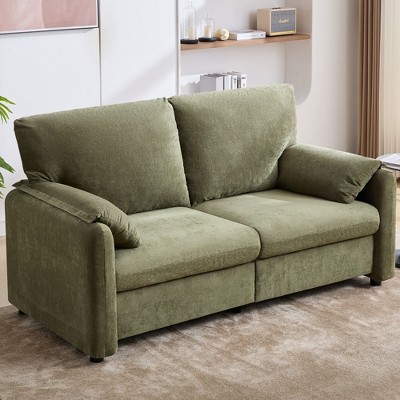 - Streamline Modern Design: Inspired by the elegance of Streamline Modern Art Deco, this sofa features soft curves, long horizontal lines, and metallic gold legs for a bold, stylish statement in any living room.