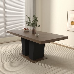 This modern style dining table features clean lines and a sleek design, making it a sophisticated centerpiece for any space. The thick tabletop adds a bold, stylish look while ensuring strength and durability for everyday use. Its extendable design offers flexible seating, expanding easily to accommodate family meals, parties, or special occasions. Built with a sturdy base and robust materials, it guarantees excellent stability and long-lasting performance. With easy assembly and a timeless contemporary aesthetic, this dining table combines practicality, durability, and elegance for versatile dining needs.