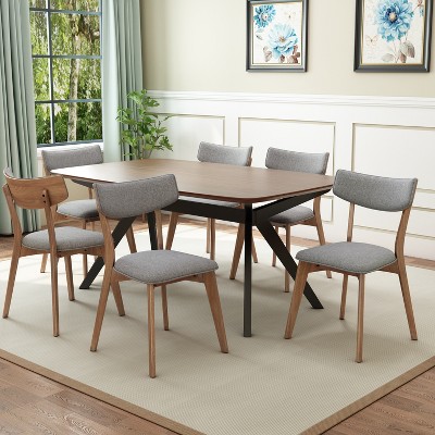 GDFStudio Megann Mid-Century Modern Wood Fabric Upholstered 5 Piece Dining Set, Walnut/Dark Gray