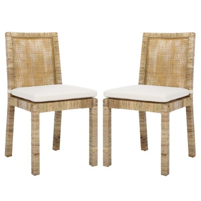 GDFStudio Ming Mid-Century Modern Rattan Faux Leather Upholstered Dining Chairs with Chrome Legs Set of 2