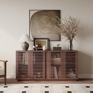 Upgrade your home with this stylish and functional buffet sideboard, crafted with solid wood slatted doors that combine durability with a modern look. The slatted design not only adds a touch of elegance but also helps keep your items organized while giving you a clear view of the contents without needing to open the doors. With generous dimensions of 15.75"D x 63"W x 29.5"H, this cabinet offers plenty of storage for your dining essentials, from plates and glassware to serving tools and more. Inside, adjustable shelves let you customize the layout to fit everything from tall vases to stacked dishes, making it easy to adapt the space as your needs change. The clean lines and versatile design make this piece a perfect fit for any room in the house. Whether you're using it as a TV stand in the living room, a coffee bar in the kitchen, or extra storage in the entryway, this cabinet adds both function and style. Built to last with quality materials and timeless appeal, it’s a smart addition to any modern home.
