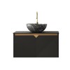 Upgrade your bathroom with this modern vanity featuring a premium sintered stone countertop, solid wood twill-design doors, and a moisture-resistant plywood cabinet. Its soft-close system ensures quiet convenience, while durable construction guarantees long-term use. Choose from four premium basin options—black crystal glass, Volakas white marble ceramic, black round ceramic, or black bowl ceramic—to match your unique style. Available in oak or black finishes, this vanity blends durability, elegance, and practicality, making it a versatile centerpiece for any bathroom renovation.