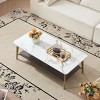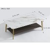 GDFStudio Nat 47.24" Rectangular Double Layer Iron Coffee Table with Ceramic Top and Wood Shelf