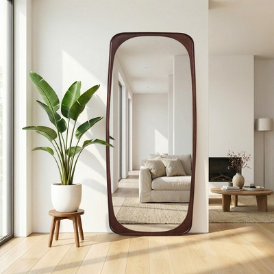 GDFStudio Nivelle Wavy Round Decorative Mirror, Walnut, 30"