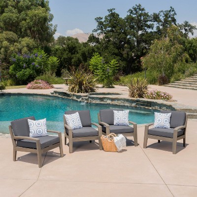 GDFStudio Oliver Outdoor Acacia Wood Club Chairs with Cushions Set of 2, Brown/Blue