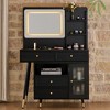 GDFStudio Ramon 4-Drawer Vanity Set with Stool, Dimmable Mirror, Power Outlet and Adjustable Side Cabinet