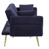 Elevate your living space with the GDFStudio Rex Sleeper Sofa, a modern 3-in-1 futon loveseat that brings both comfort and versatility. Wrapped in cozy teddy fabric with a soft texture, this 80-inch sofa features golden metal legs and a chic silhouette that complements contemporary interiors. The adjustable backrest reclines to four positions (105°, 135°, 160°, 180°), transforming seamlessly into a sleeper. Foldable armrests add customizable comfort, while two included support pillows offer ergonomic relief. Built on a solid wood frame with a weight capacity of up to 600 lbs, this medium-firm futon is both stylish and sturdy. Designed for living rooms, bedrooms, offices, or RVs, it arrives in a single package with simple assembly required.
