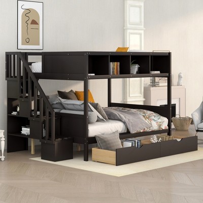 GDFStudio Senior Full Size Solid Wood Loft Bed with Storage Cabinet and Shelves, White