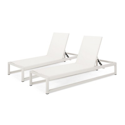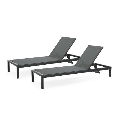 GDFStudio Simon Outdoor Mesh and Aluminum Armless Adjustable Chaise Lounges Set of 4