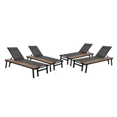 GDFStudio Simon Outdoor Mesh and Aluminum Armless Adjustable Chaise Lounges Set of 4