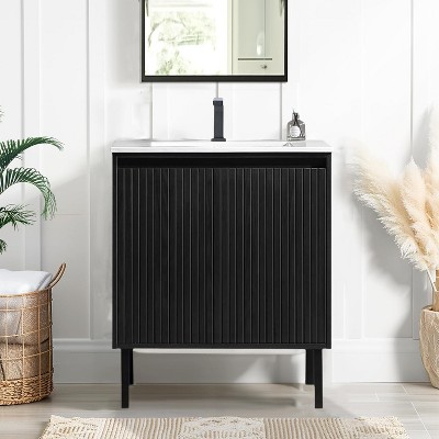 - Premium Ceramic Basin: The sleek ceramic basin enhances the cabinet’s elegance while providing a smooth, easy-to-clean surface that resists stains, ensuring it stays looking pristine and fresh for years of daily use.