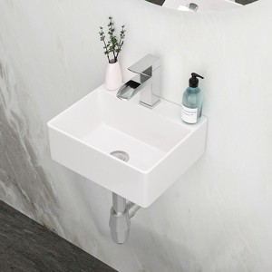 Enhance your bathroom with this modern wall-mount ceramic sink, designed to blend sleek aesthetics with functional convenience. Its minimalist rectangular silhouette and glossy finish create a clean, contemporary look, while the wall-mount design saves valuable floor space and adds a stylish floating effect. Crafted from premium ceramic, the sink ensures durability, stain resistance, and easy maintenance. Featuring a pre-drilled faucet hole for quick installation, this compact sink provides both elegance and practicality, making it a perfect choice for modern homes, apartments, and small bathrooms.