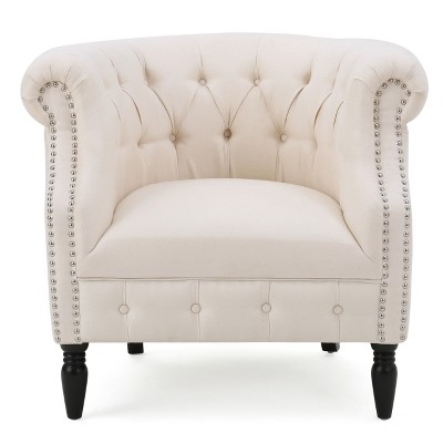 GDFStudio Tampa Contemporary Upholstered Tufted Club Chair with Nailhead Trim, Beige/Fabric