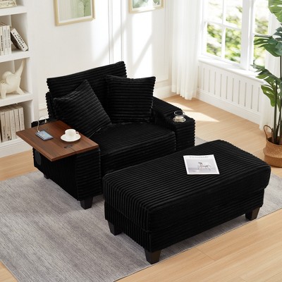 GDFStudio Ulen Modern Corduroy Upholstered Storage Chair with Ottoman and Detachable Cushions