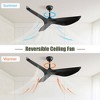 This 52-inch modern ceiling fan combines energy efficiency, durability, and style. Powered by a quiet DC motor, it is 65% more efficient than traditional AC models and ensures powerful airflow with minimal noise. Featuring three curved ABS blades, a reversible function, and a multifunctional remote, it provides comfort in every season. Suitable for bedrooms, living rooms, kitchens, or covered patios, this fan enhances both indoor and outdoor spaces. Its easy installation and modern black design make it a perfect choice for stylish and functional cooling.