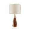 - Mid-Century Modern Design: The table lamp showcases a unique triangular shape with an espresso wood grain finish, perfectly blending mid-century modern style with contemporary elegance. Its antique brass metal accents add a touch of sophistication, making it a statement piece in any room.