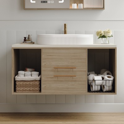 Includes: Hot and Cold Faucet , Ceramic Sink and Bathroom Vanity Base