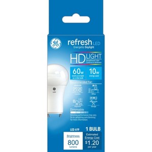 The GE Refresh HD Daylight Bulbs are improved, energy-saving LED bulbs that enhance home décor and the appearance of colors. Experience the difference with bolder colors and enhanced contrast vs standard LED white light bulbs. Dim the lights and set the right mood for any occasion with these dimmable light bulbs. Our high-definition light bulbs offer a cool, invigorating light that is perfect for energizing moments and active spaces. We recommend these HD bulbs for use in spaces like bedrooms, family rooms, dining rooms, and entryways. These energy-efficient daylight bulbs replace 60-Watt bulbs and are rated to last up to 13.7 years based on 3 hours of daily use, saving you money for years to come.