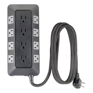 GE 12-Outlet Surge Protector 3540J 8' Braided Cord Black/Gray: Extension Cord, Outlet Extender, Multiple Plug-in Outlets