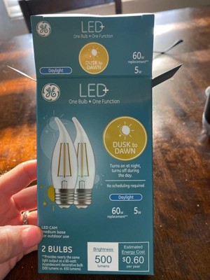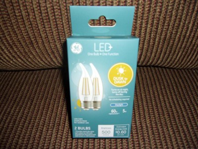 - What’s Included: Two (2) GE LED+ Dusk to Dawn Decorative CA11 Light Bulbs; Explore the rest of the LED+ Family – a simple addition to everyday light