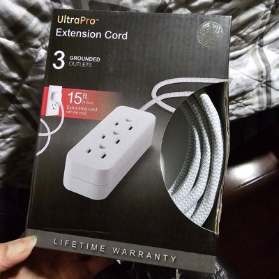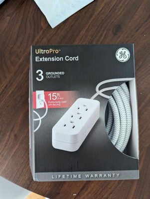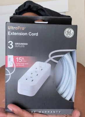 GE 3-Outlet Grounded Extension Cord 15' Braided Cord Gray/White: Indoor Long Extention Cord, 16 AWG, 13 Amps, 15 ft