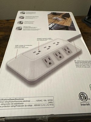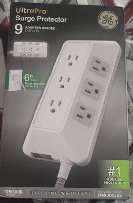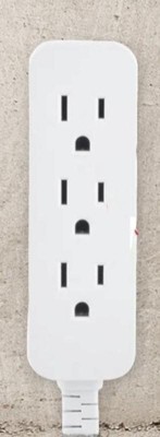 - Flat-plug extension cord – Keep furniture close to the wall with the low-profile flat plug that fits easily in tight spaces; angled flat plug allows extension cord to be inserted into one outlet without blocking the others