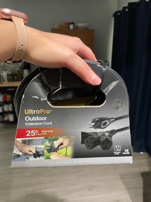 GE 3-Outlet Grounded Extension Cord Indoor/Outdoor 16AWG 25' Black: Heavy Duty, Long 25ft, Outside Use, 13 Amps, 3 Conductors