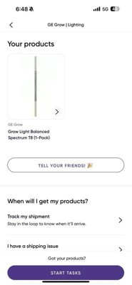 The GE LED Plant Grow Light for flowers and fruit is designed to fit the growth stage of mature plants. Suitable for use as plant lights for indoor growing, the advanced red light spectrum of these flood light bulbs is the ultimate solution for gardening enthusiasts and professionals alike. With a high output PPF of 34 micromoles per second, these versatile LED bulbs provide more nourishment to optimize plant growth and health whether you’re cultivating luscious tomatoes, cucumbers, peppers or flowers. Unlike the red/purple lights of competitors, our energy-efficient indoor plant light bulbs appear as a pleasing white light to the human eye while delivering a high-quality full spectrum that nourishes plants for optimum growth. With a prolonged lifespan of up to 25,000 hours, our plant light for indoor plants is not just cost-effective but also hassle-free to use and maintain. Each light bulb is easy to install as a replacement into 48-inch existing shop light tube fixtures for seedling trays 6 inches above plants. Leave the light on for 12 hours per day. Say goodbye to misleading claims and trust the superior performance and reliability of GE LED grow lights for indoor plants.