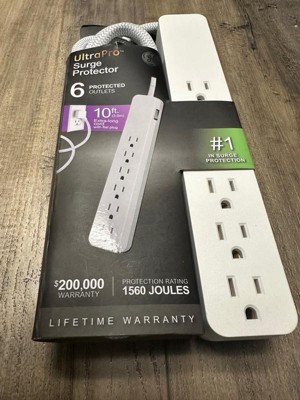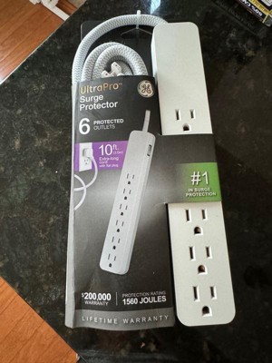GE 6-Outlet Surge Protector 1560J 10' Braided Cord White: Extension Cord & Outlet Extender, Lifetime Warranty