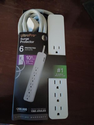 [This review was collected as part of a promotion.] This is a 10 ft braided 6 outlet plug! It’s extremely durable with its braided cord and has an included surge protector which is extremely important for extension cords. It can also go to 1560J in power!